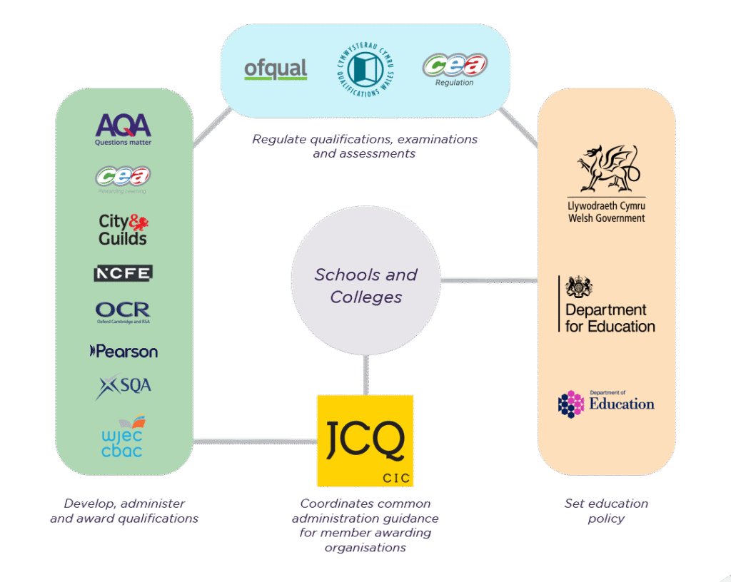 JCQ’s members, AQA, CCEA, City & Guilds, NCFE, OCR, Pearson, SQA, and WJEC/Eduqas are at the core of JCQ.